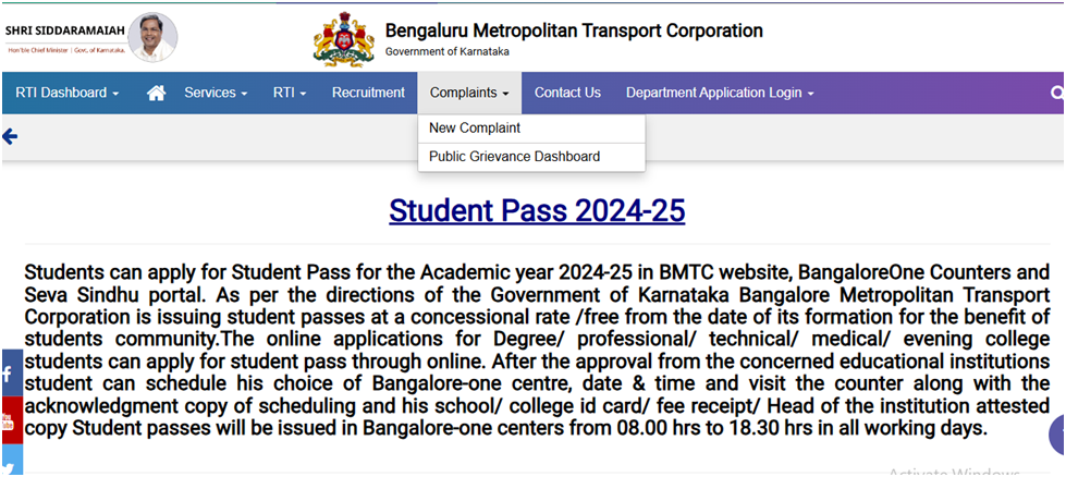 The purpose of this program is to offer transportation services to all students in the state of Karnataka. The official website where you may submit your application for the BMTC Bus Pass 2025 program.